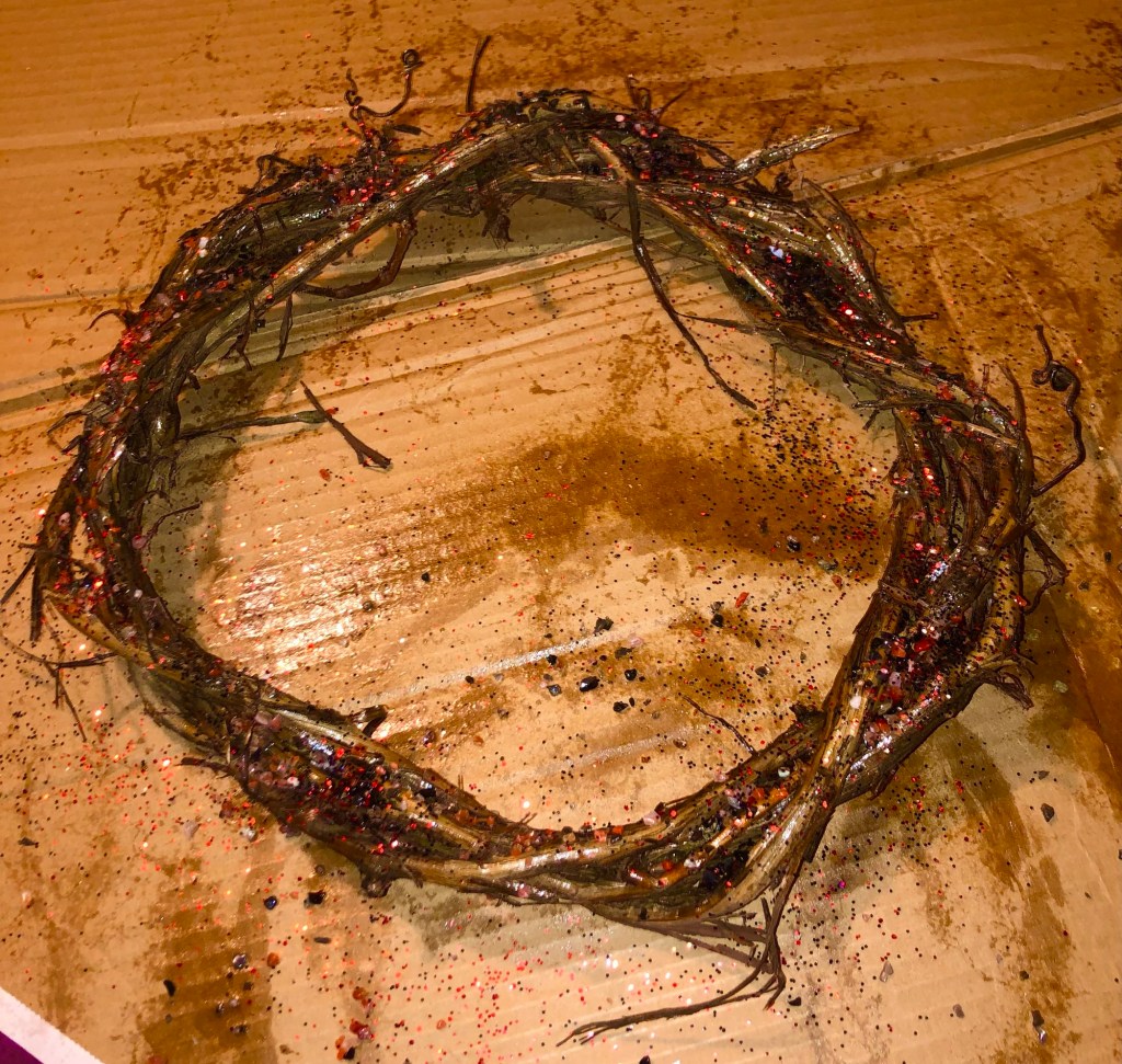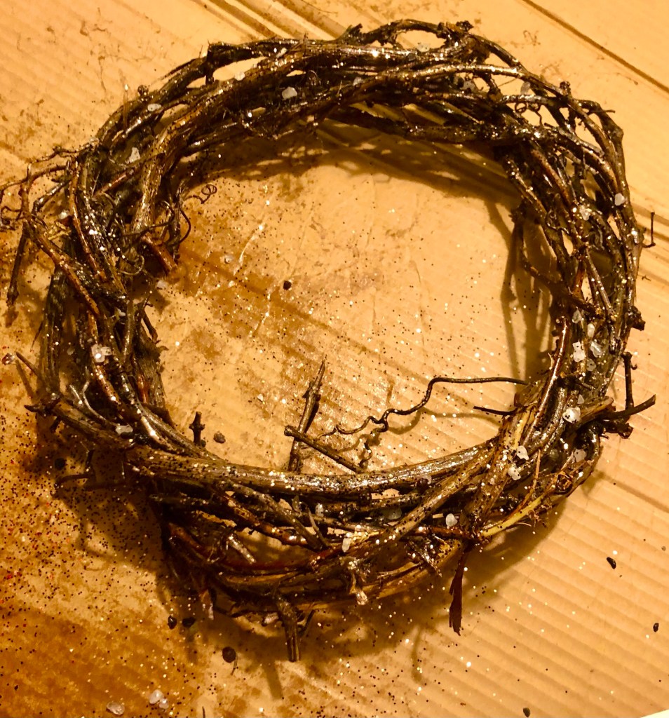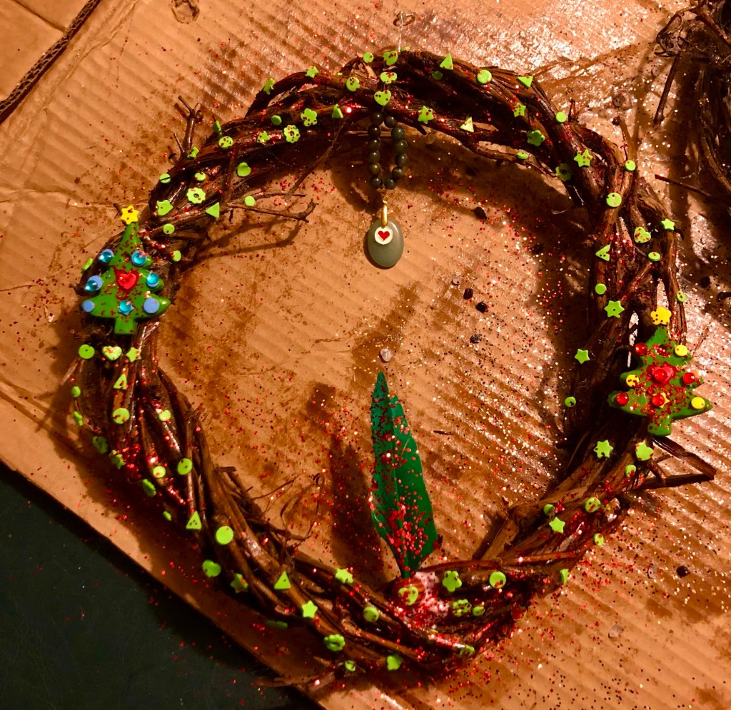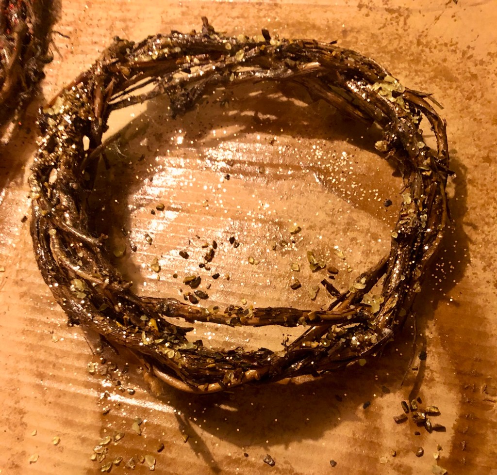 Yesterday was filled with fun and creativity as I started another batch of grapevine – gemstone encrusted, wreaths to give to my most special people for Christmas gifts.
