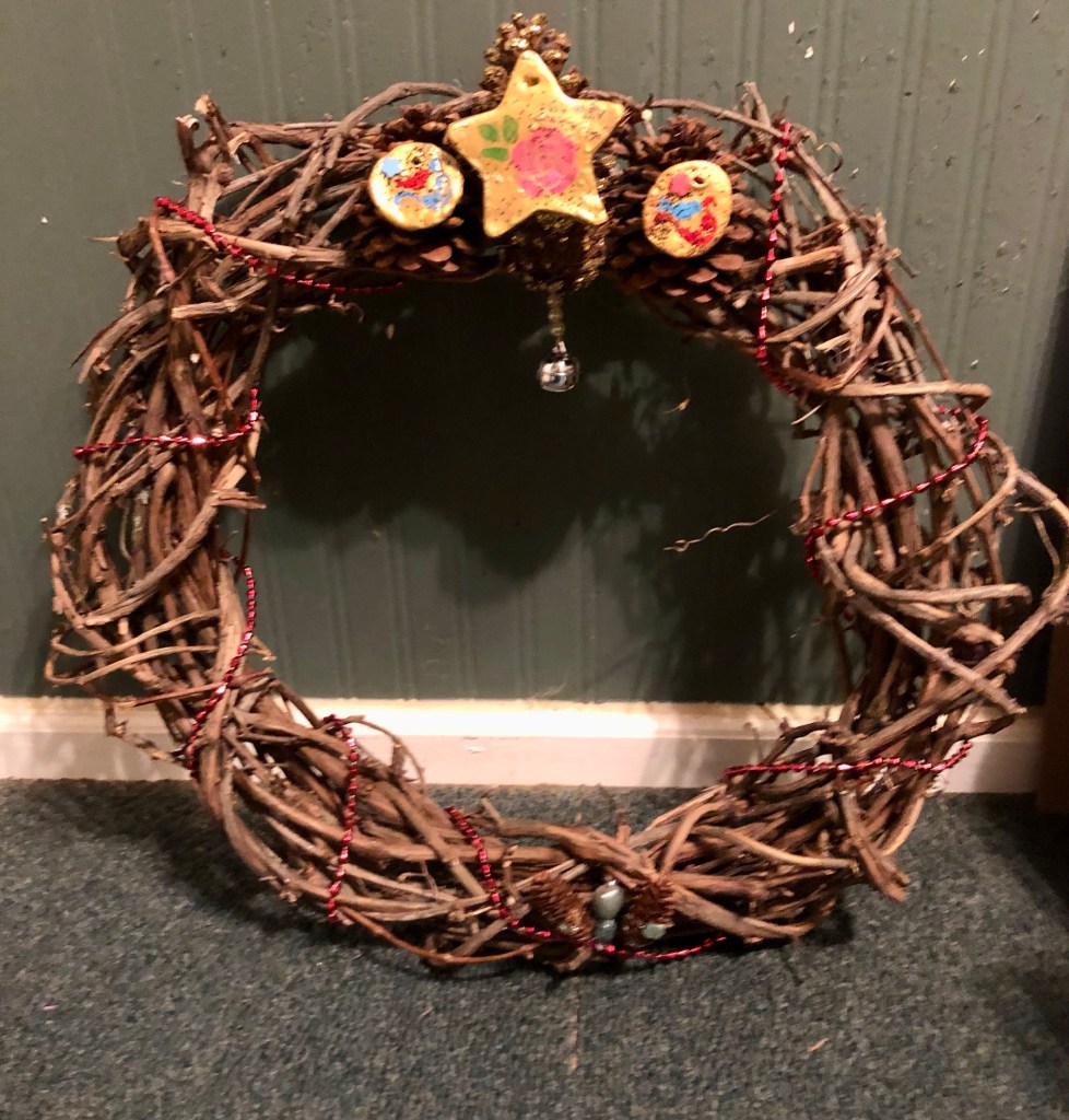 I made a few for myself to hang on my many doors this Christmas and many more. There’s one I’ve completely finished and the other I’ll work on some more.