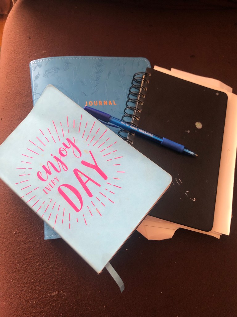 Lined white paper and a blue pen works best. Through journaling you can discover many things about yourself that you did not know.