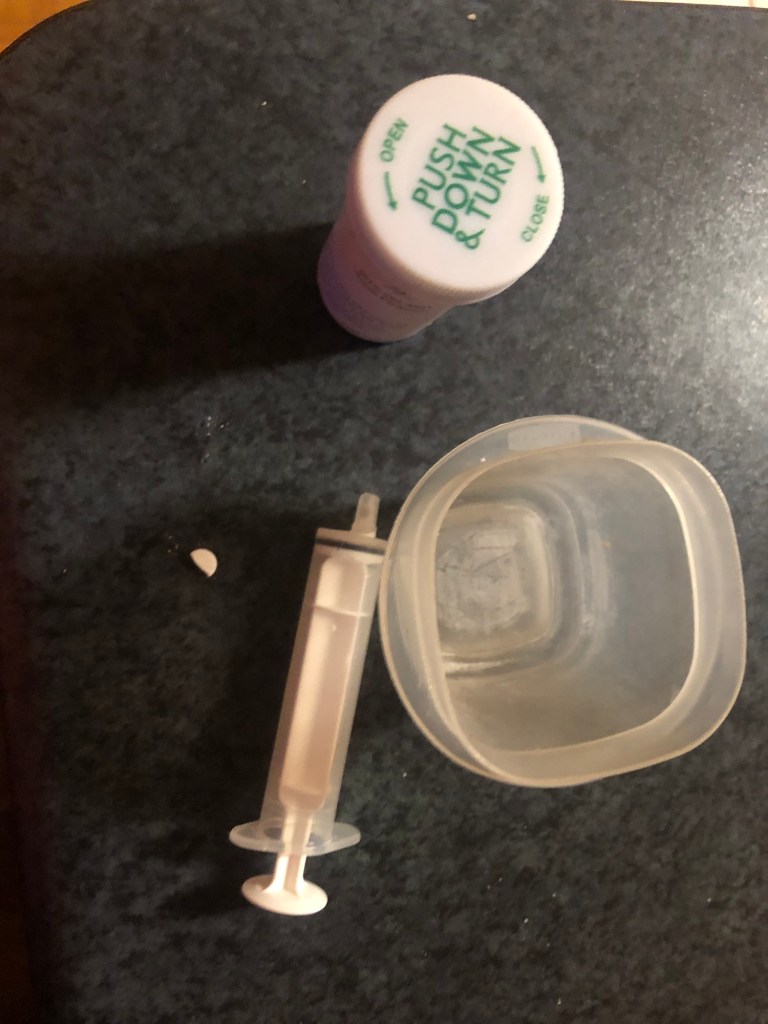 Then there is the medicine, that you believe you’ve successfully administered, as they swiftly jerk their face in the opposite direction while their mouth is still open and spit it out the other side.